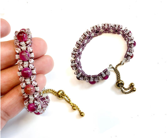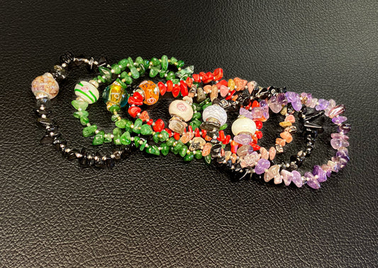 Gorgeous Gemstone Stretch Bracelet with Heart Charm