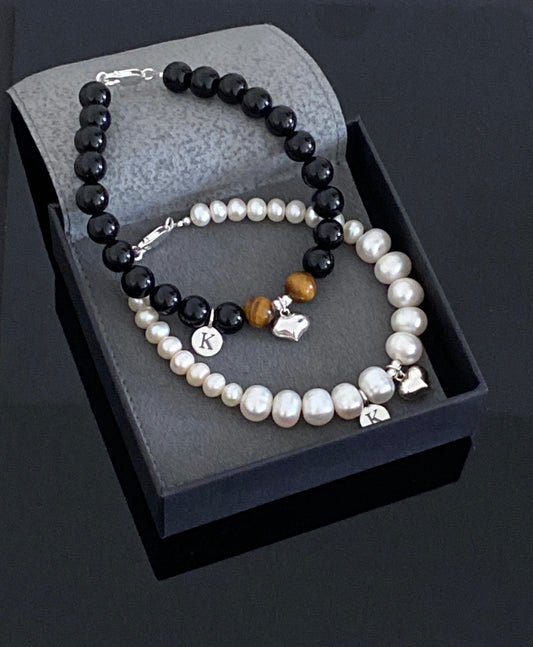 Sterling Silver Couple Bracelet with Personalised Charm.
