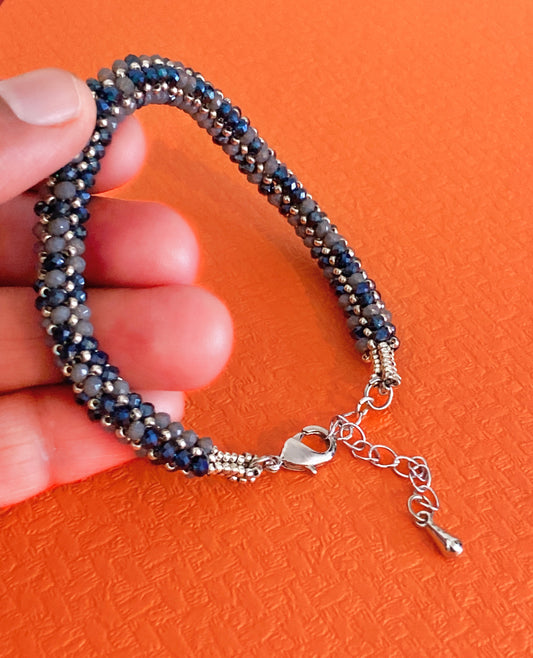 Blue-Grey Herringbone Bracelet | Crystal Beaded Jewellery