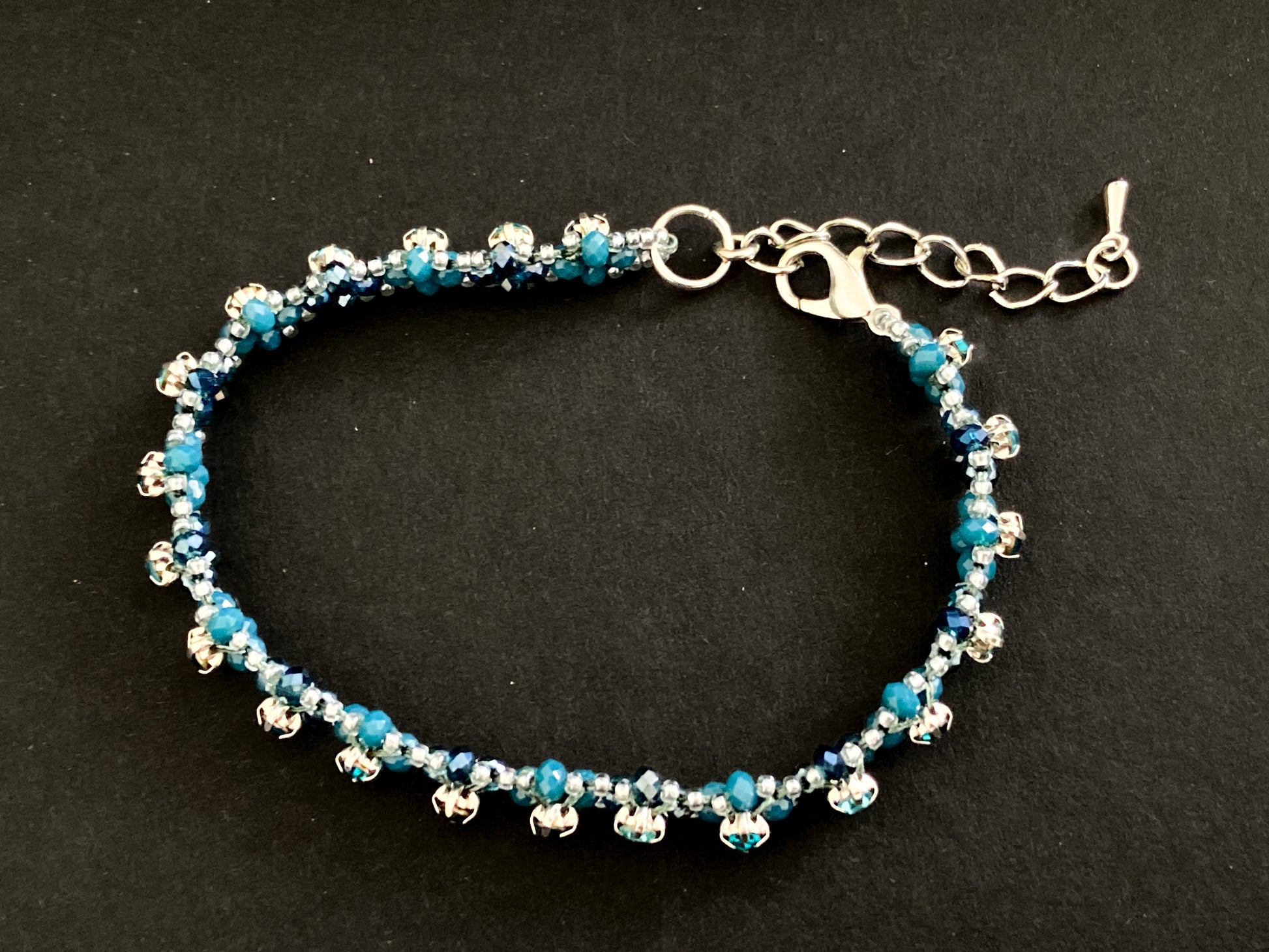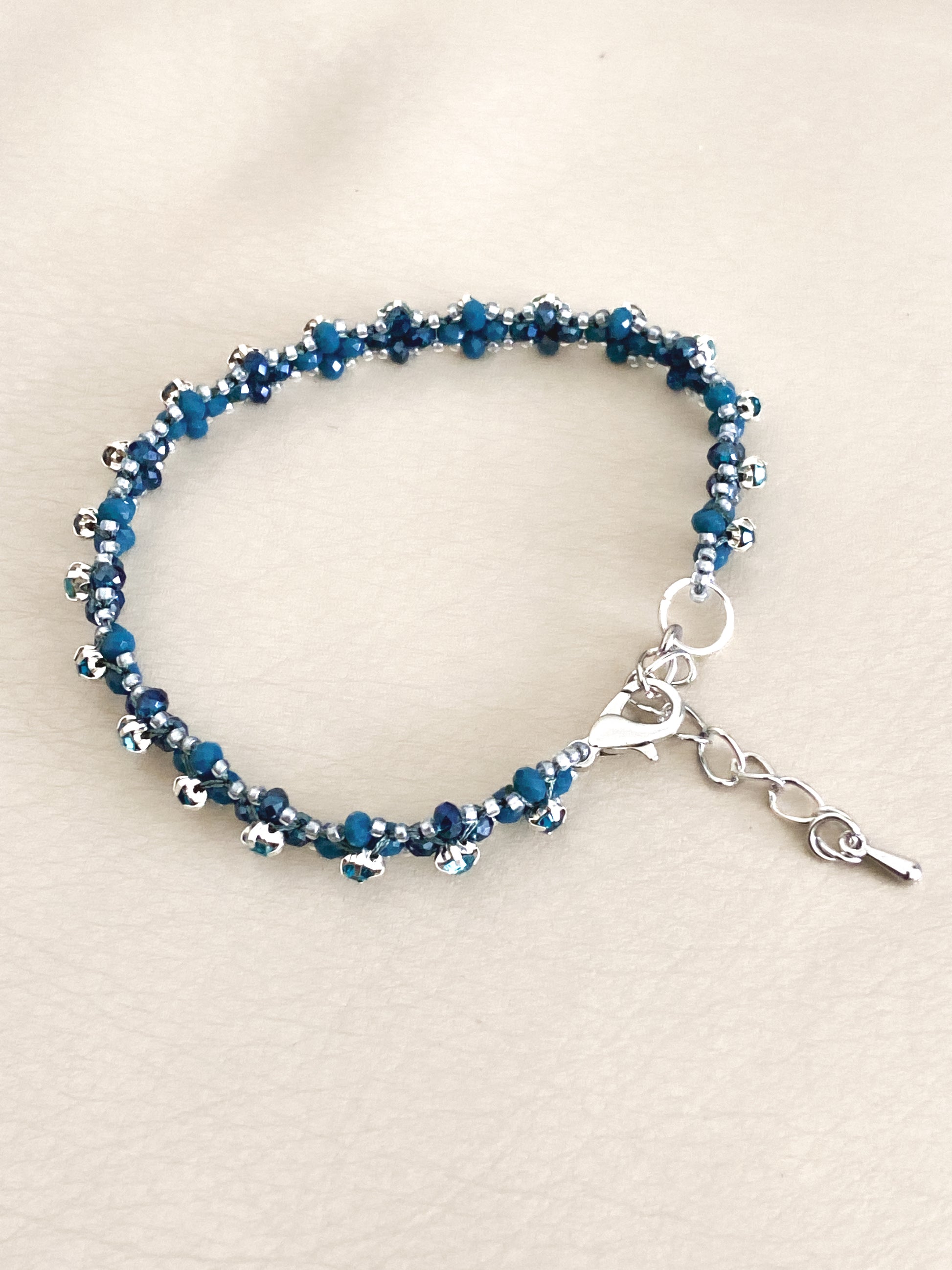 Introducing our Sophistic tennis bracelet, a stunning fusion of sleek elegance and minimalist style. Crafted with meticulous attention to detail, this bracelet features a delicate design embellished with rose montees, showcasing shades of blue that dance gracefully against a backdrop of silver accents. With its classic appeal and subtle sparkle, it effortlessly exudes timeless glamour. The simplicity of its design enhances its sophistication, making it a versatile accessory that can elevate any ensemble, from casual chic to formal elegance. Whether worn alone for a subtle statement or layered for added impact, our Sophistic tennis bracelet is a must-have addition to your jewelry collection.