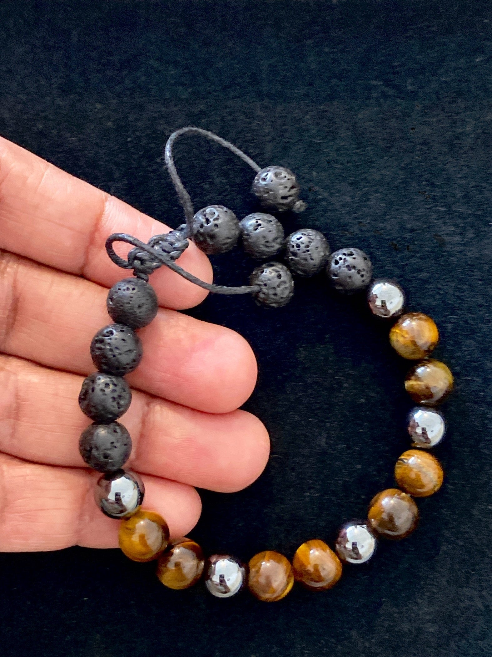 Tiger’s eye, Hematite and Lava rock Shambala Style Bracelet